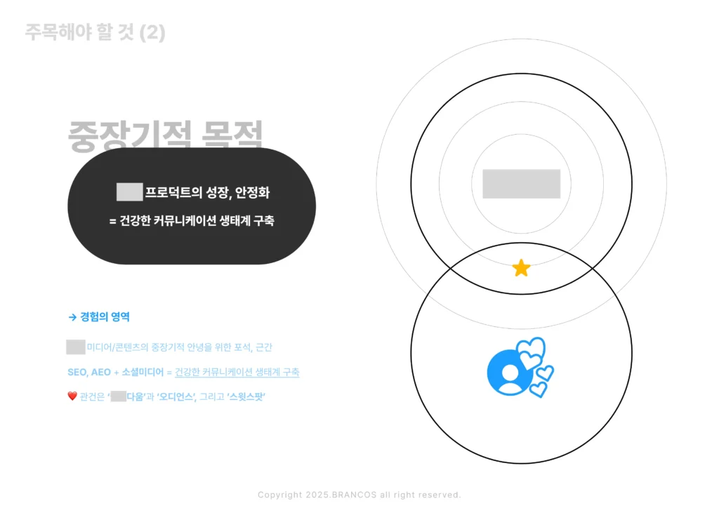 브랜코스는 기획 선정부터 신중하게 접근합니다. 이 주제가 정말 우리 고객에게 가치 있는 정보인가, 우리만이 할 수 있는 이야기인가를 묻습니다.(‘우리가 하고 싶은’ 이야기보다 ‘고객이 듣고 싶은’ 이야기) 브랜드 고유의 톤앤매너를 반영하고, 콘텐츠 구성의 완결성을 추구합니다. 이해를 돕는 시각 요소도 공들여 만들고, CTA도 자연스럽게 녹여냅니다.